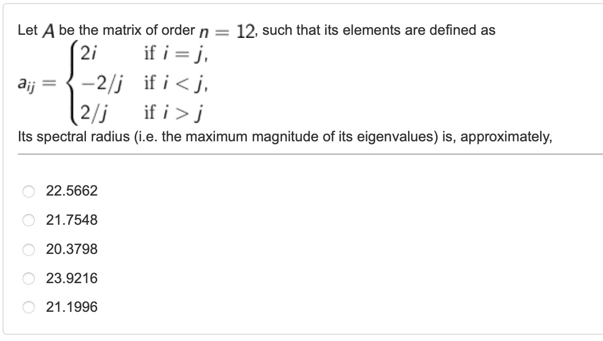 -This option is false. While it is true that matrix A has two eigenvalues with the same maximum magnitude (5i and -5i), the power method can still converge in such cases. It converges to the dominant eigenvalue, which is the eigenvalue with the largest magnitude. In this case, the dominant eigenvalue is -8.