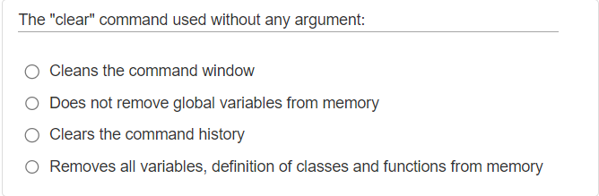 From MATLAB documentation: clear removes all variables from the current workspace, releasing them from system memory. clear removes a global variable from the current workspace but not other workspaces.