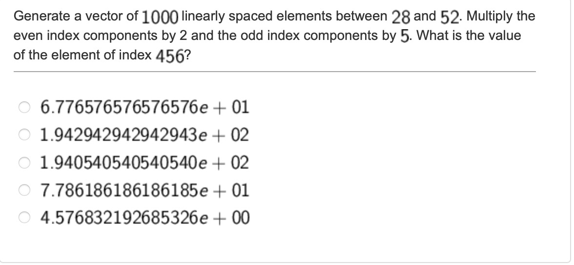 First of all, let’s analyze the question. Let x be a vector made of 10 equally spaced elements in the interval [0,1] which means the vector x contains 10 values that are evenly spaced between 0 and 1.